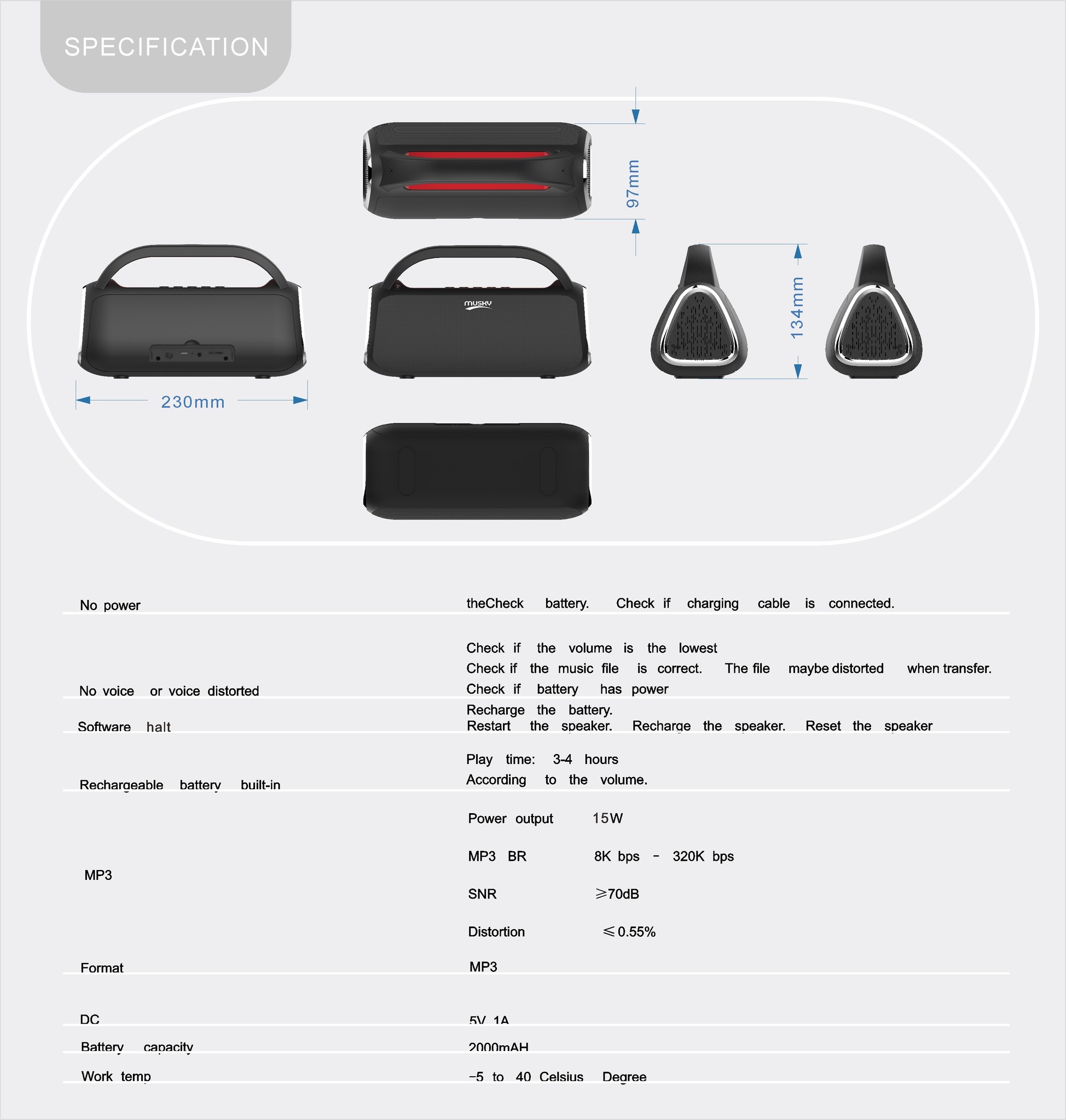 Dimension : 230*97*134mm