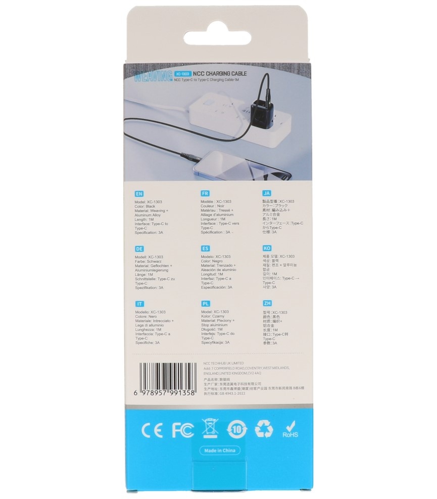 Setzen Sie auf Zuverlässigkeit und Stil mit dem NCC-Kabel – dem idealen Allround-Ladegerät für alle Ihre Geräte.